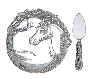 Product Description : This gorgeous Arthur Court Horse Plate features an elegant horse motif with a polished center, and is accompanied by an attractive cheese server with a rope motif handle, and a stainless steel lifter. This set is perfect for cheese and crackers, or simply use the plate for fruits, appetizers , or candies. Manufactured with Arthur Court's signature premium aluminum alloy, this cheese set comes packed in an attractive gift box.