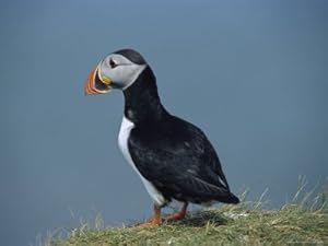 Vendor: Photographic Print Title: Atlantic Puffin Perches on a Grass-Covered Cliff Artist: Sisse Brimberg Size: 30 x 40 inches