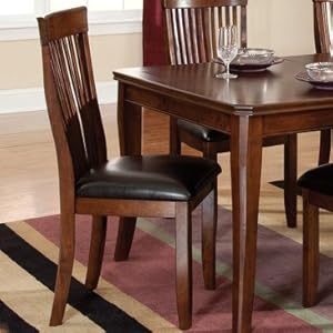 Product Description : 10324 Features: -Side chair.-Seat upholstered.-Tapered legs.-Surface clean easily with a soft cloth. Construction: -Constructed of solid wood and veneer. Color/Finish: -Aged vintage sienna brown finish. Assembly Instructions: -Assembly required. Collection: -Regency collection. Warranty: -Manufacturer provides 1 year warranty.