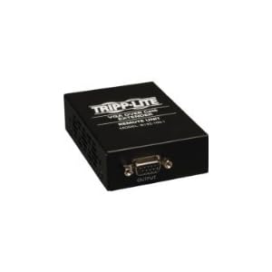 Product Description : From the ManufacturerEnsure clear video transmission at distances of up to 1000 feet! The B132-100-1 VGA Over Cat5 Receiver is the ideal solution for digital signage applications that require long distance transmission and uncompromising video quality. It works with a B132-002-1 or B132-004-1 local unit to extend a VGA video signal over long distances. It features built-in Equalization and Gain controls for adjusting the video image. Mounting hardware is included to support multiple installation options. An AC power supply is included for powering the device.Feature FocusB132-100-1VGA Over Cat5 Receiver Offers:Ideal for digital signage situations, such as retail, schools, churches, etc. Works with a B132-002-1 or B132-004-1 local unit to extend a 1024 x 768 (60Hz) video signal up to 1,000 ft. Supports a maximum resolution of 1920 x 1440 (60Hz) Built-in equalization and gain controls to adjust the video image Includes mounting hardware that allows unit to be wall-mounted, rackmounted or pole mounted The Smart Solution for Digital Signage ApplicationsClick here for a larger imageVGA PortsClick here for a larger imageThe Smart Solution for Digital Signage ApplicationsThe B132-100-1 enables the video source to be installed in a secure, remote location for controlled access. It can be used to connect display devices with VGA ports, such as DTVs, plasma displays, LCD TVs and projectors, to VGA video sources, such as computers, video cards and AV receivers.Greater Distance?Greater FlexibilityThis genuine Tripp Lite VGA Over Cat5 Receiver works with a B132-002-1 or B132-004-1 local unit to extend a VGA video signal beyond the average 100-ft. distance limitation. The B132-100-1 can extend a 1024 x 768 (60 Hz) signal up to 1000 feet when using 24Awg Solid Wire Cat5e/6 cable (Tripp Lite N202-series), and supports a maximum resolution of 1920 x 1440 (60 Hz). For optimal image quality between 500 and 1,000 ft., use Zero-Skew cable, such as Tripp Lite P524-01K.Superior Quality Assures Error-Free Signal TransferThe B132-100-1 Receiver is manufactured using top-quality materials. Plus, built-in equalization and gain controls allow the video image to be adjusted for optimal quality. It is also compliant with RoHS (Reduction of Hazardous Substances) standards, reflecting Tripp Lite's commitment to environmental responsibility.Versatile Installation OptionsThe B132-100-1 Receiver includes mounting hardware that enables it to be installed in any venue. Mounting options include wall-mount, rackmount and pole mount.Peace of Mind1-year limited warranty.Extend a VGA Signal Up to 1000 ft.Click here for a larger imageTechnical SpecificationsClick here for a larger imageType:VGA Over Cat5 ReceiverConnectors:1 x HD15 (female)1 x RJ45)Housing Material:Black MetalSwitches:Equalization, GainMax Resolution:1920 x 1440 (60Hz)Max Range:1000 ft. @ 1024 x 768 (60Hz)Warranty:1 yearWhat's in the BoxB132-100-1 Receiver Mini-Screwdriver for EQ/gain adjustment Mounting Hardware External Power Supply (Input: 100-240V, 50/60Hz, 0.5A Output: 5V, 2A) Owner's Manual Tripp Lite Connects All Your ElectronicsB132-002-1 2-Port VGA Over Cat5 TransmitterIdeal for digital signage solutions. Splits a single VGA video signal into 2, and when used with B132-100-1 or B132-100-WP-1 remote units, extends the signal up to 1,000 feet from the source. Includes an external power supply and mounting hardware. 1-year warranty.B132-004-1 4-Port VGA Over Cat5 TransmitterIdeal for digital signage solutions. Splits a single VGA video signal into 5 (1 local, 4 remote), and when used with B132-100-1 or B132-100-WP-1 remote units, extends the signal up to 1,000 feet from the source. Increase the number of displays by up to 25 (1 local, 24 remote) by daisychaining up to six B132-004-1 units together. Includes an external power supply, a VGA daisychain cable, and mounting hardware. 1-year warranty.N202-050-BL Cat6 Gigabit Solid Conductor Snagless Patch Cable (RJ45 M/M)?50 ft.Tripp Lite's Solid Conductor 4-pair Cat6 patch cables are ideal for long Ethernet patch cable run